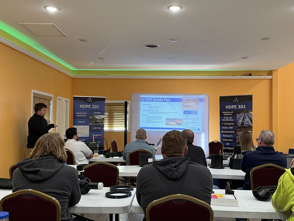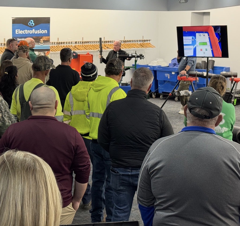 Live demonstrations remain a cornerstone of these programs—clearly illustrating how HDPE butt fusion produces a joint that is not only leak-free, but stronger than the pipe wall itself. In addition to butt fusion, the team conducted electrofusion demonstrations, showcasing the simplicity and effectiveness of making reliable service connections to the main.